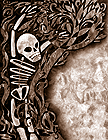 ![]() skeleton jangling hollow bones together brittle bones like flutes that wail lonely in the wind why dance when the grave is cool and deep around you when the grave night sleep is calling you on to lie to rest to slumber leaden why nimbly dance instead shimmy through the interstices wriggle wormlike up through peeks and cracks rattle on your moss grown mound and flail against the night why not die the cricket's death chirrup ceasing stoneblack body growing dry against the hill lifedust trembling in the slightest breeze hollowed out by age why not die this death this death why not just die i will not die the insect's death never dancing to be free i will shimmy through the maze of airholes left inside my grave i will issue from my tomb and sing the hollow song i will rattle with the wind until my bones catch flesh and flesh grows on me until bone and ligament are clothed in silk again until hair sprouts dark and billowing and my eyes spark dark and gay and life flows whole and beckoning from my limbs i will not lie this death of death but dance out from my grave because i live because i live because i live CASEY JUNE WOLF |